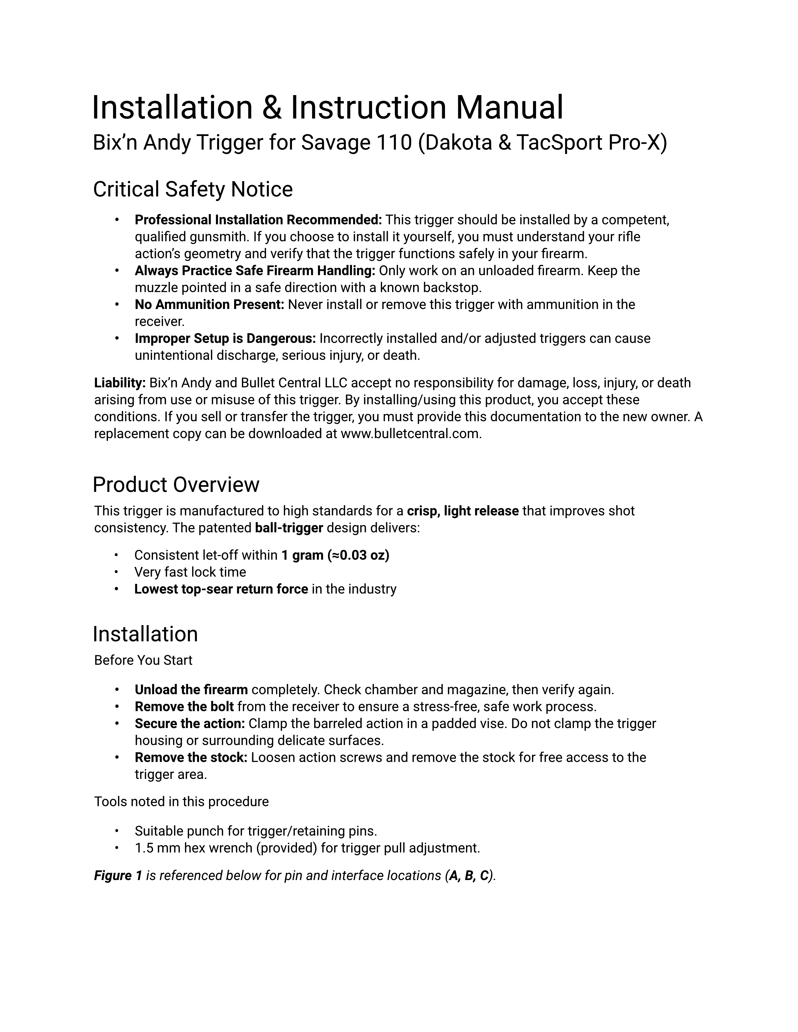 BIX'N ANDY DAKOTA (REM700) TRIGGER MANUAL